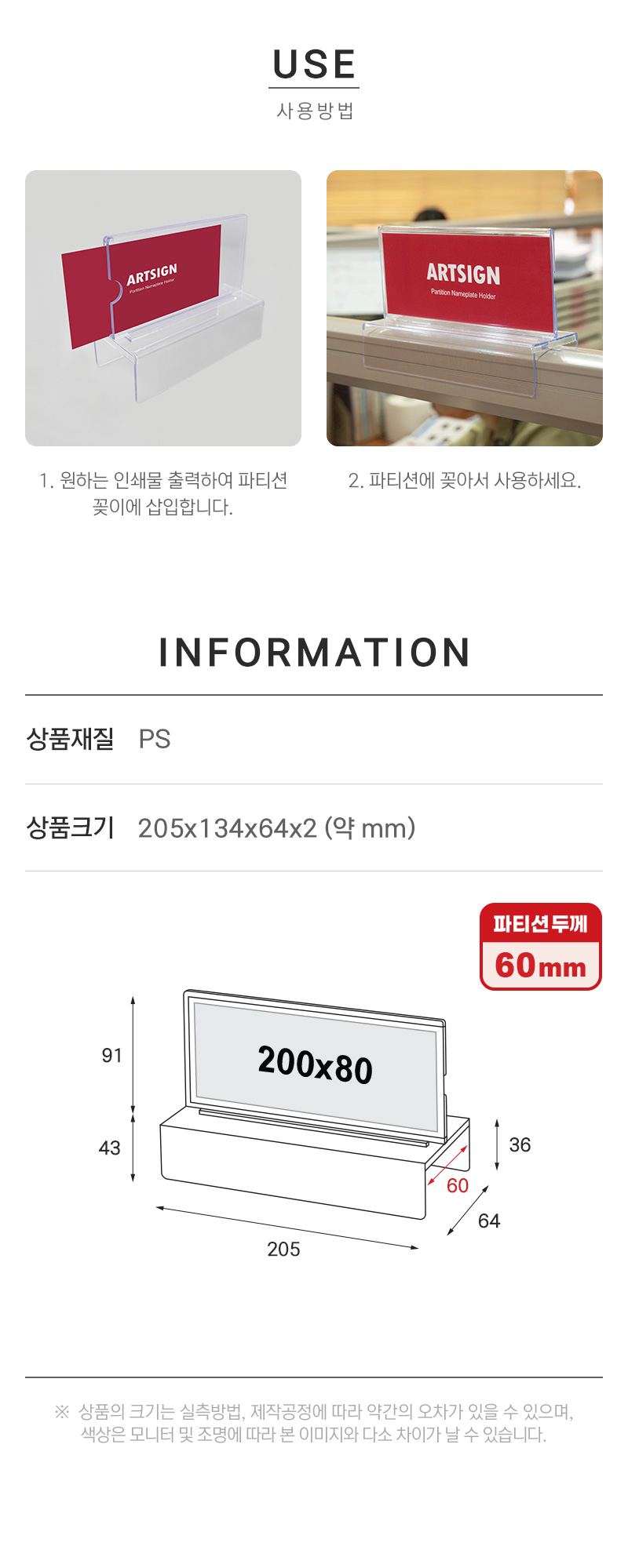 · 사용방법: 파티션의 폭(두께)에 맞는 파티션 꽂이를 꽂아서 사용하세요.