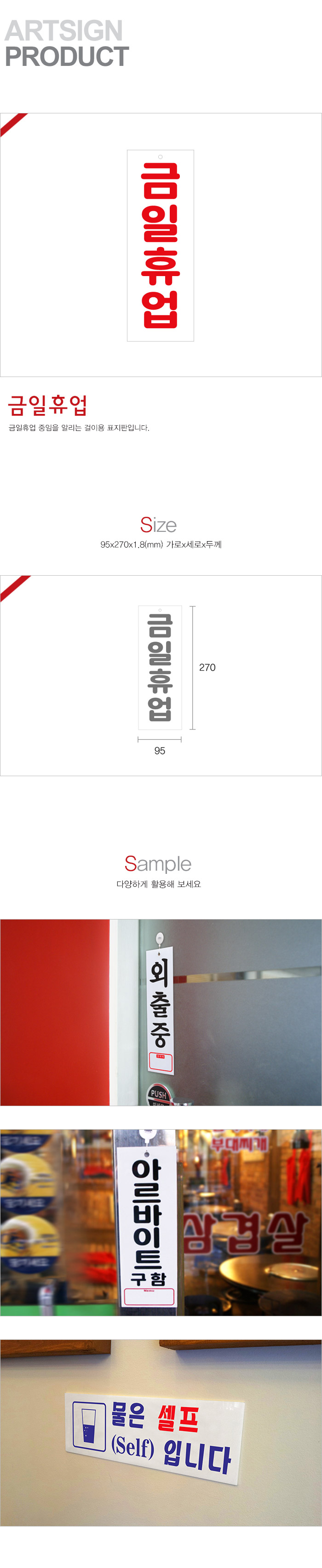 상품크기 95x270x1.8 (mm) 가로x세로x두께