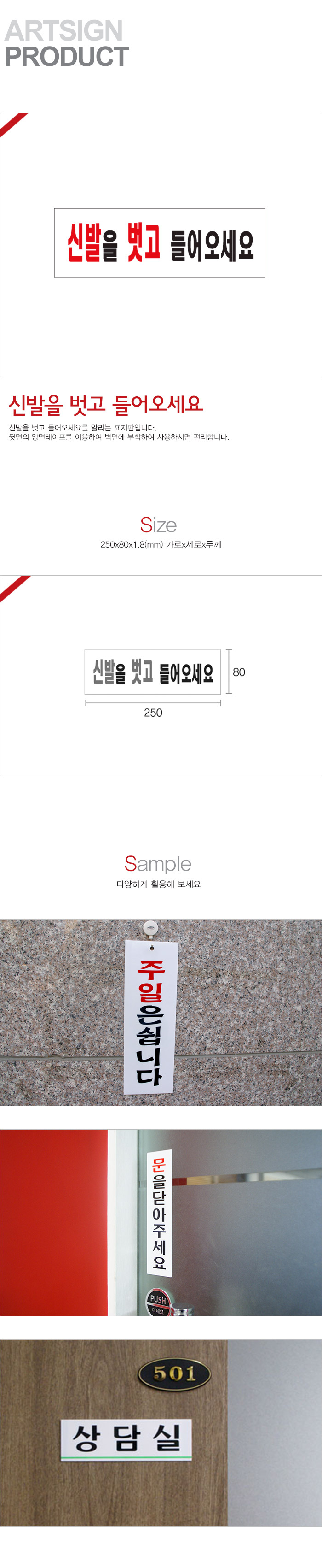 상품크기 250x80x1.8 (mm) 가로x세로x두께