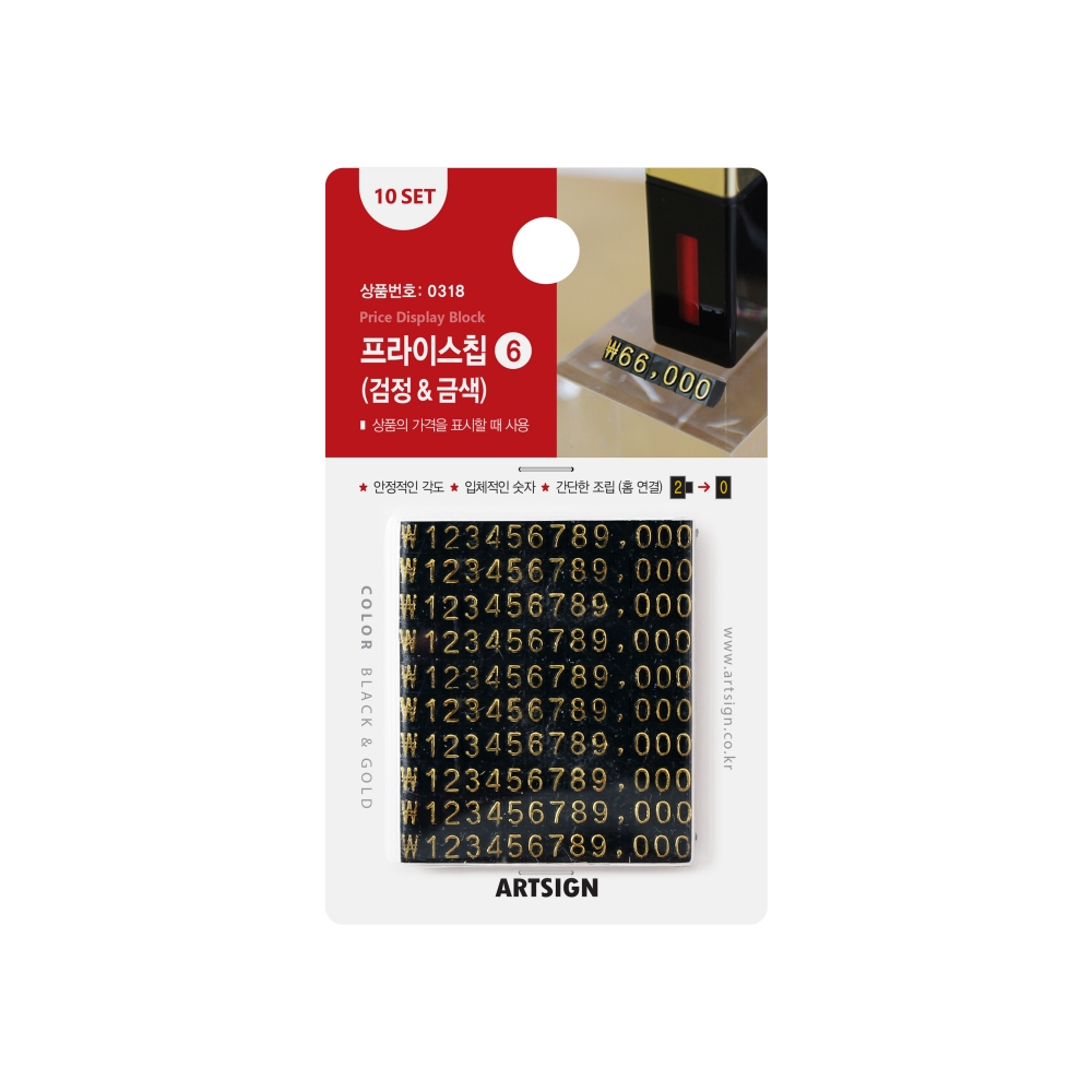 포장단위 10세트 - 1세트 구성: 14블록 / 1~9번: 각 1개입 / 0번: 3개입 / 쉼표(,): 1개입 / ₩: 1개입