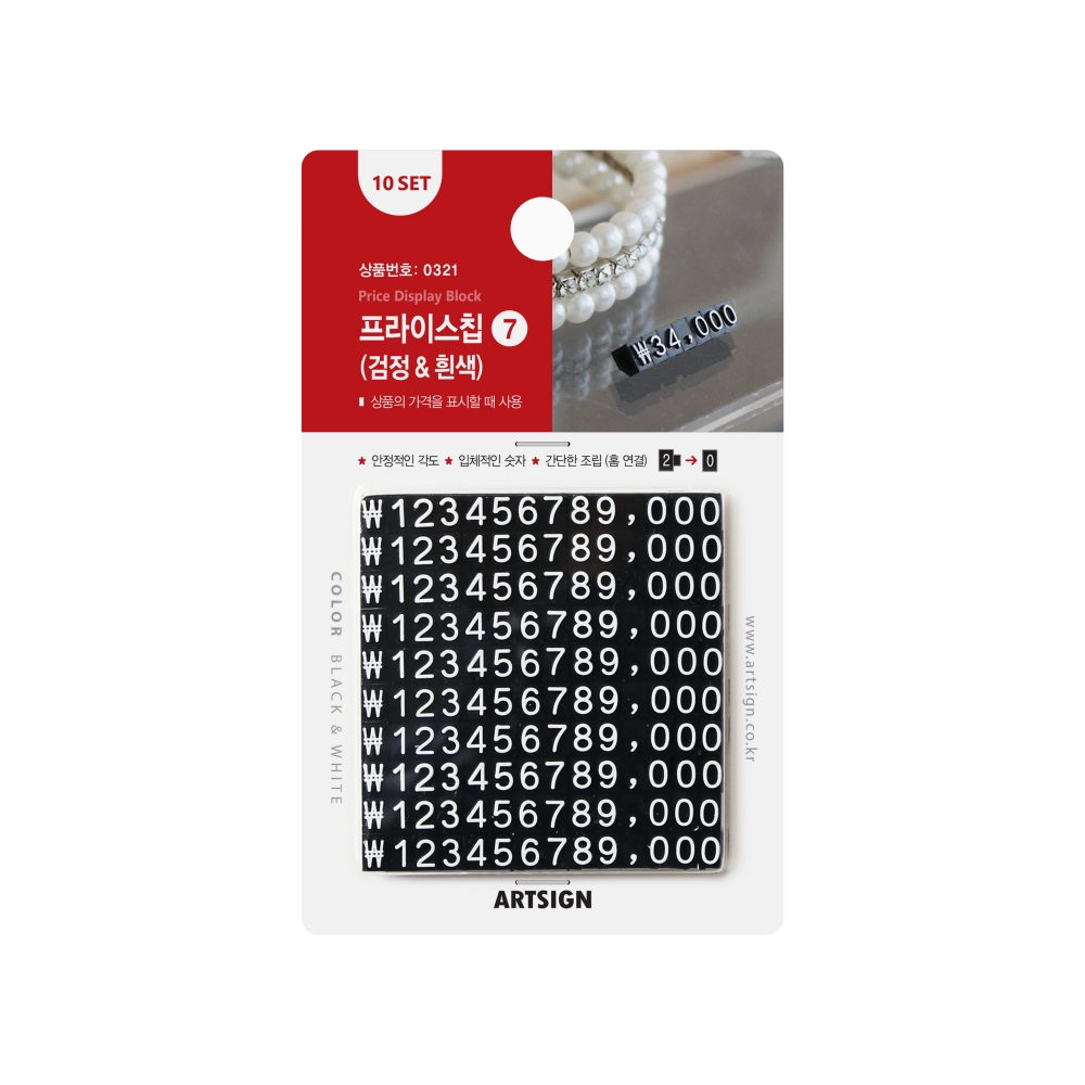 포장단위 10세트 - 1세트 구성: 14블록 / 1~9번: 각 1개입 / 0번: 3개입 / 쉼표(,): 1개입 / ₩: 1개입