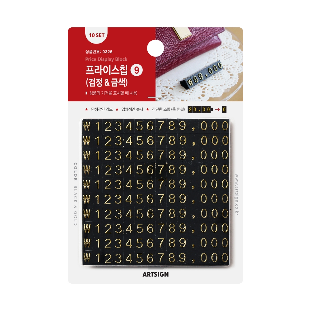 포장단위 10세트 - 1세트 구성: 14블록 / 1~9번: 각 1개입 / 0번: 3개입 / 쉼표(,): 1개입 / ₩: 1개입