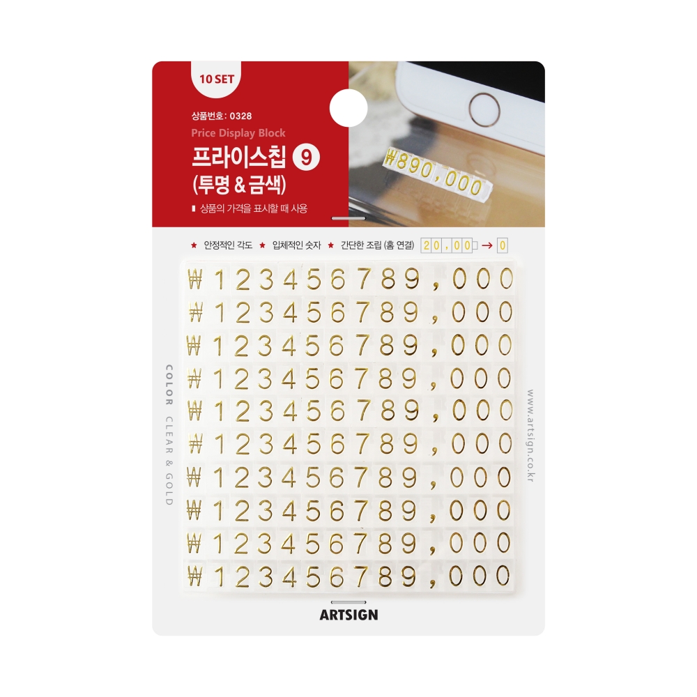 포장단위 10세트 - 1세트 구성: 14블록 / 1~9번: 각 1개입 / 0번: 3개입 / 쉼표(,): 1개입 / ₩: 1개입