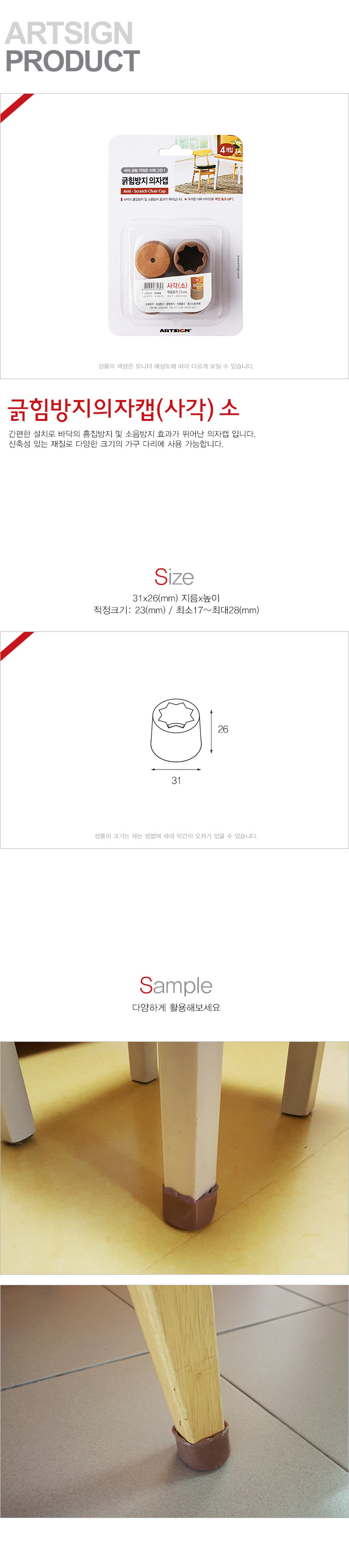 상품크기 31x26 (mm) 지름x높이, 적정크기: 23 (mm) / 최소17~최대28 (mm)