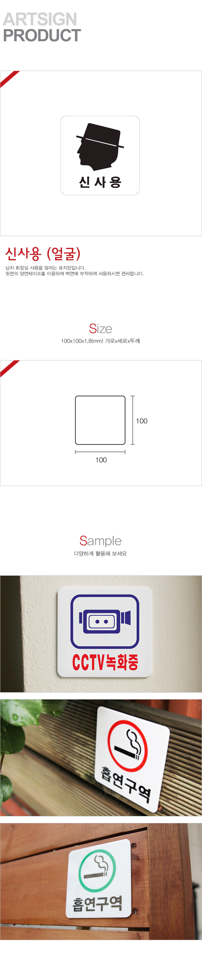 상품크기 100x100x1.8 (mm) 가로x세로x두께