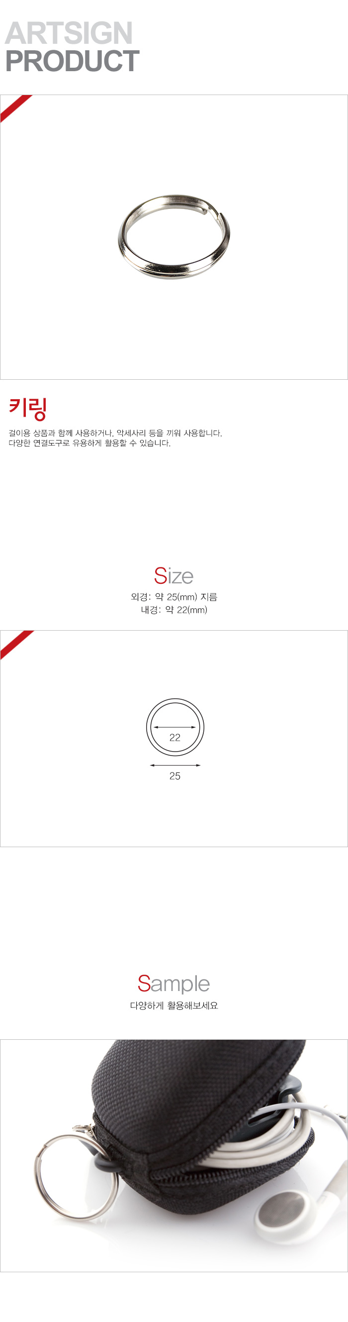 상품크기 외경: 약25(mm), 내경: 약22(mm) / 지름