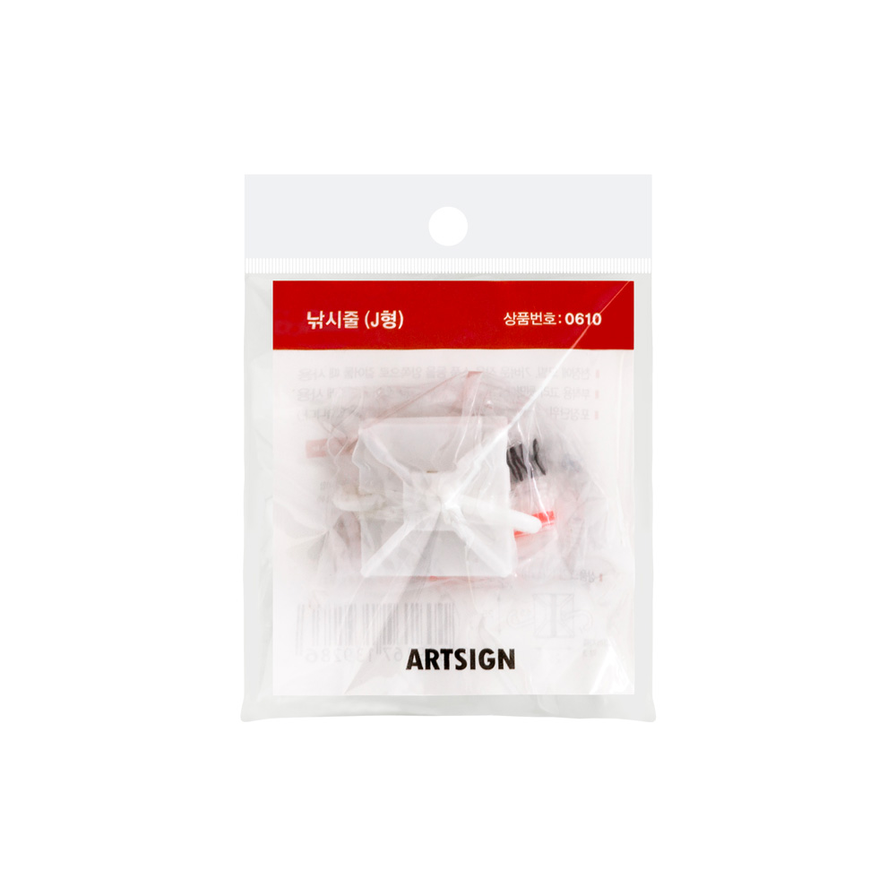 포장단위 부착판 2개입, J형고리 2개입, 낚싯줄 1개입 (1판=10봉)