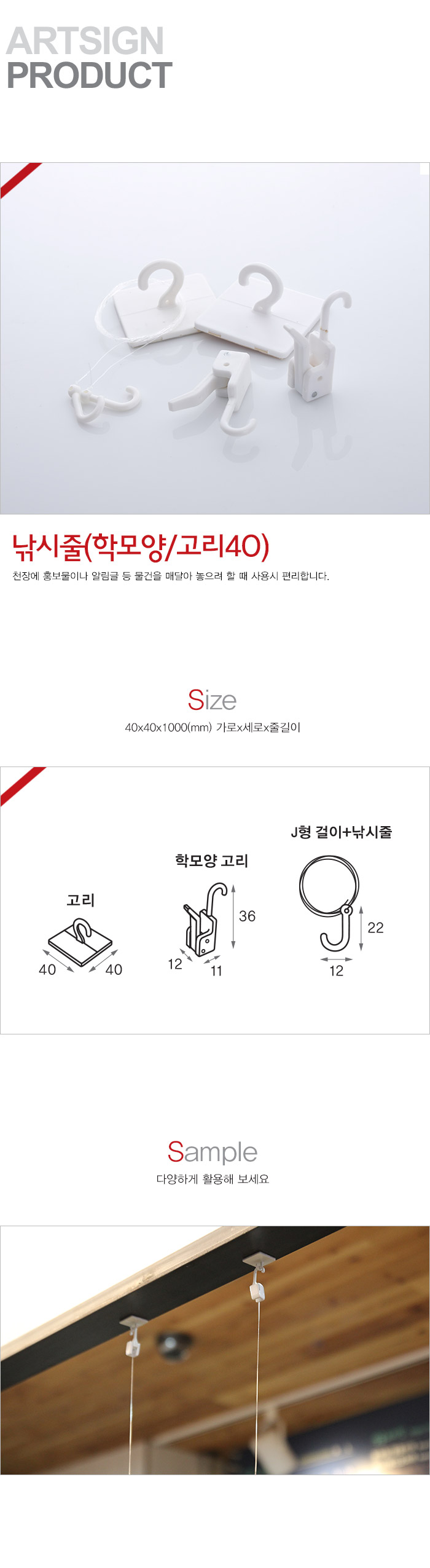 포장단위 고리 2개입, 학모양고리 2개입, J형걸이+낚싯줄 2개입 (1판=10봉)