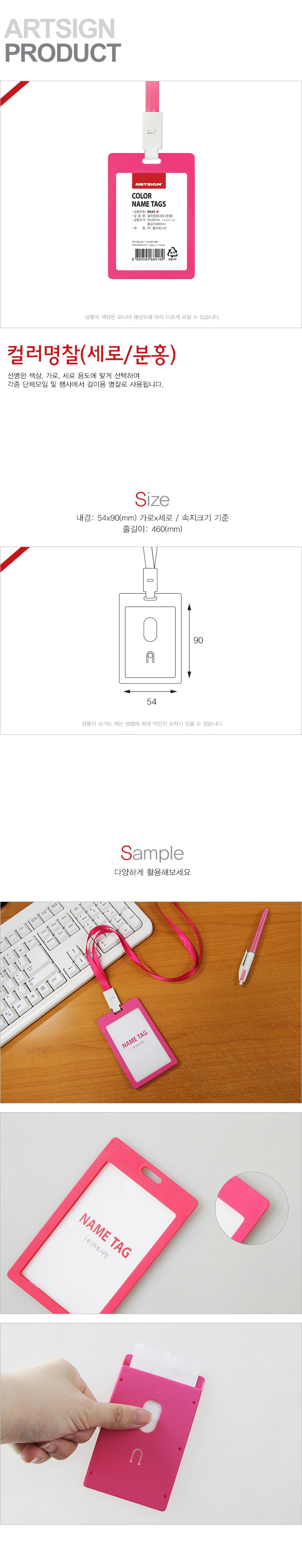 • 컬러명찰(세로/분홍)
