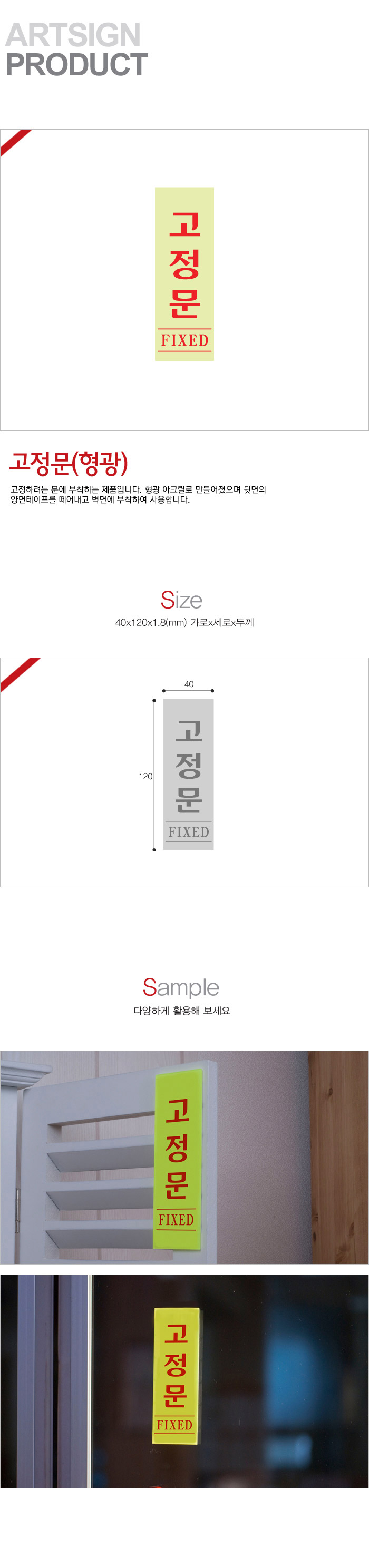 상품크기 40x120x1.8 (mm) 가로x세로x두께