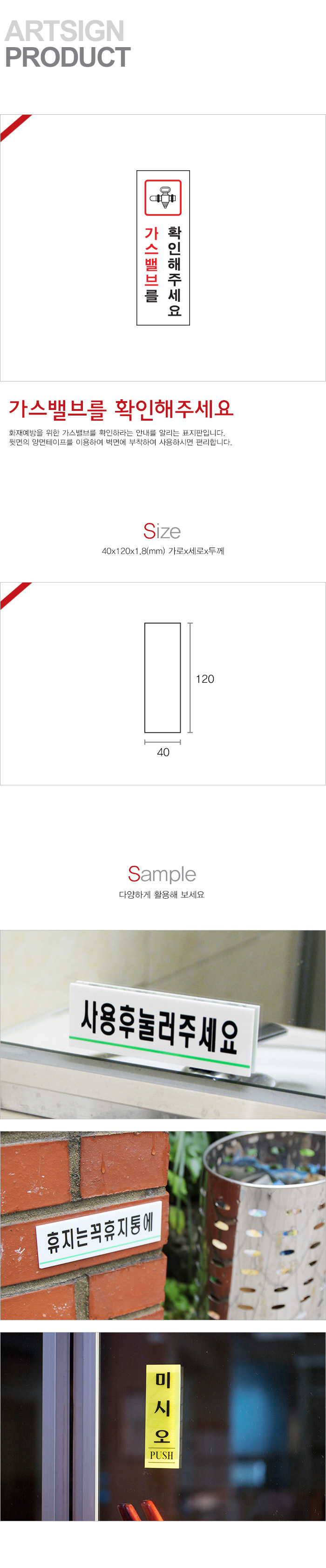 상품크기 40x120x1.8 (mm) 가로x세로x두께