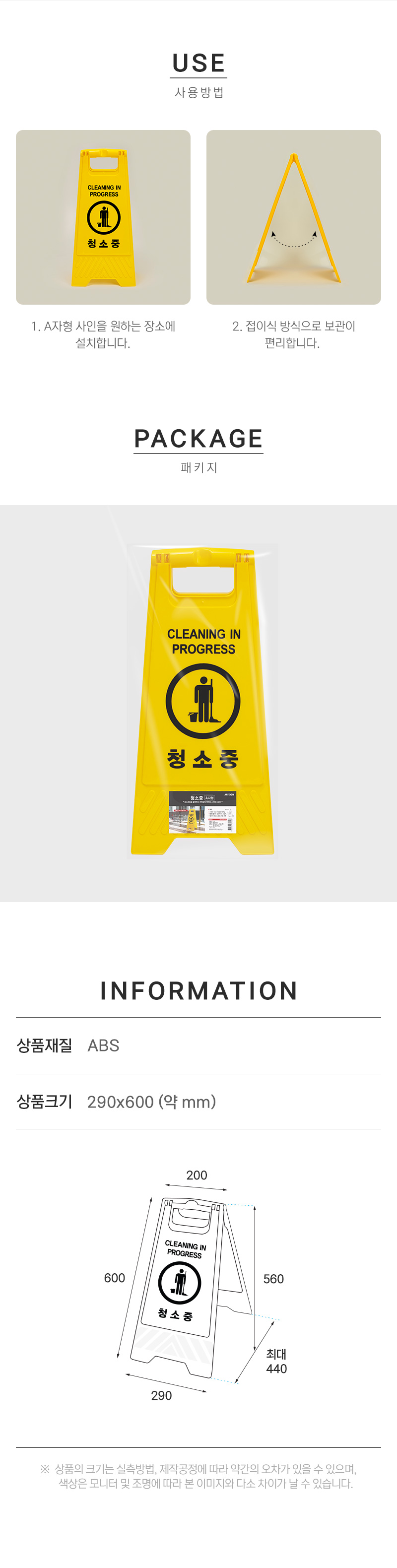· 사용방법: 원하는 위치에 A형 표지판을 놓고 사용하세요.