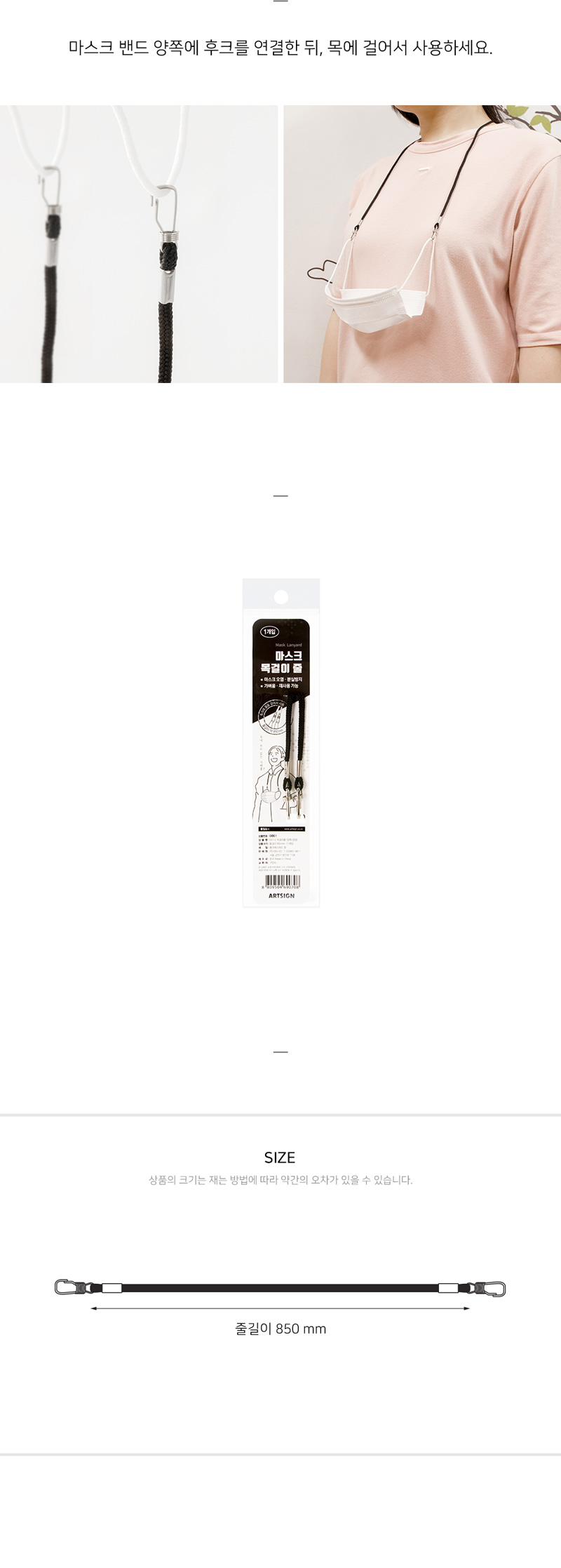 사용방법: 마스크 밴드 양쪽에 후크를 연결한 뒤, 목에 걸어서 사용하세요.