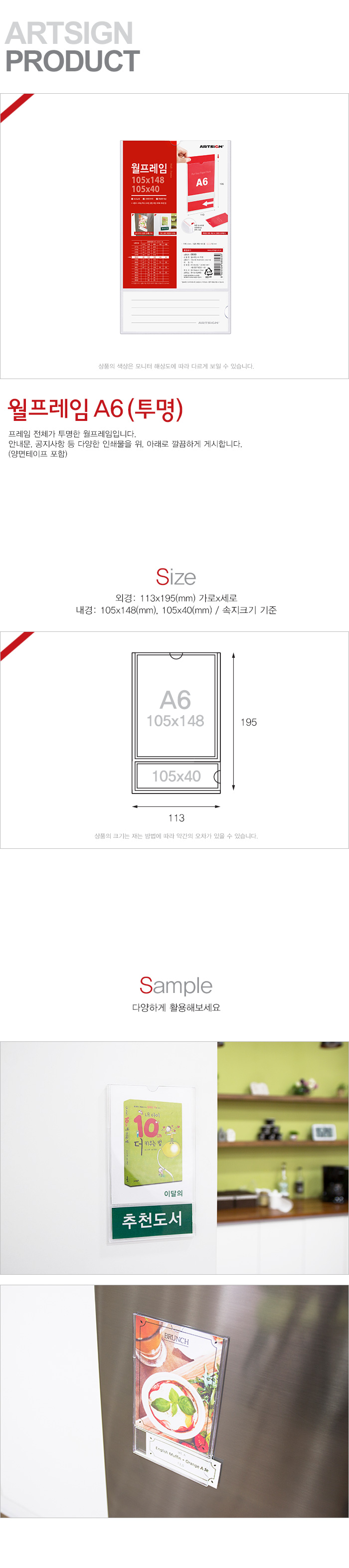상품크기 외경: 113x195 (mm) 가로x세로, 내경: 105x148 (mm), 105x40 (mm) / 속지크기 기준