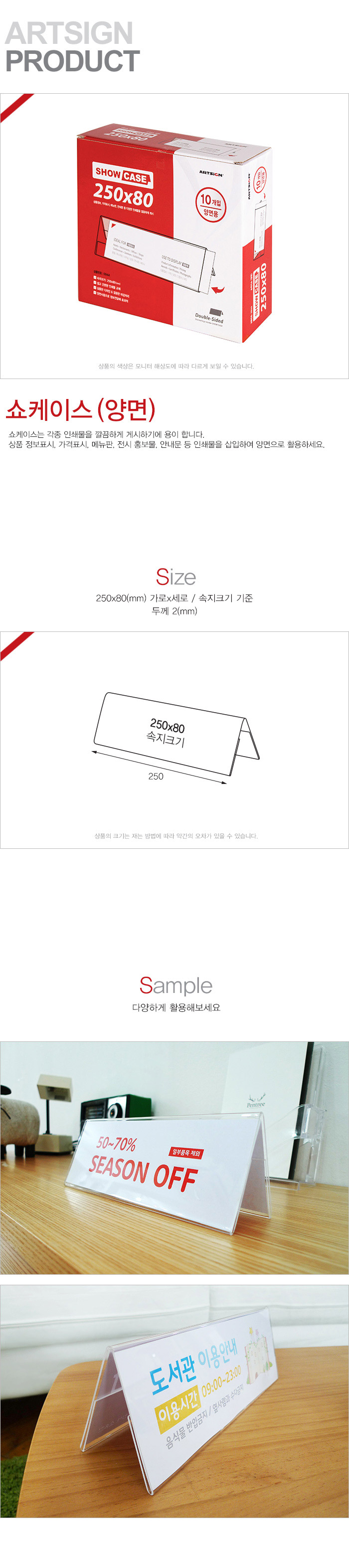 상품크기 250x80 (mm) 가로x세로 / 속지크기 기준, 두께: 2 (mm)