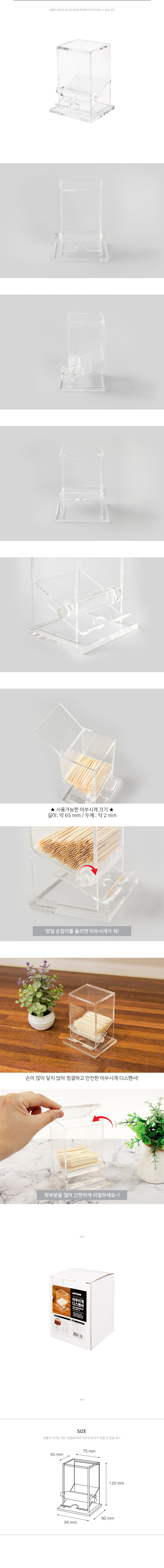 투명한 재질의 청결하고 깔끔하게 이쑤시개를 보관할 수 있는 상품입니다.