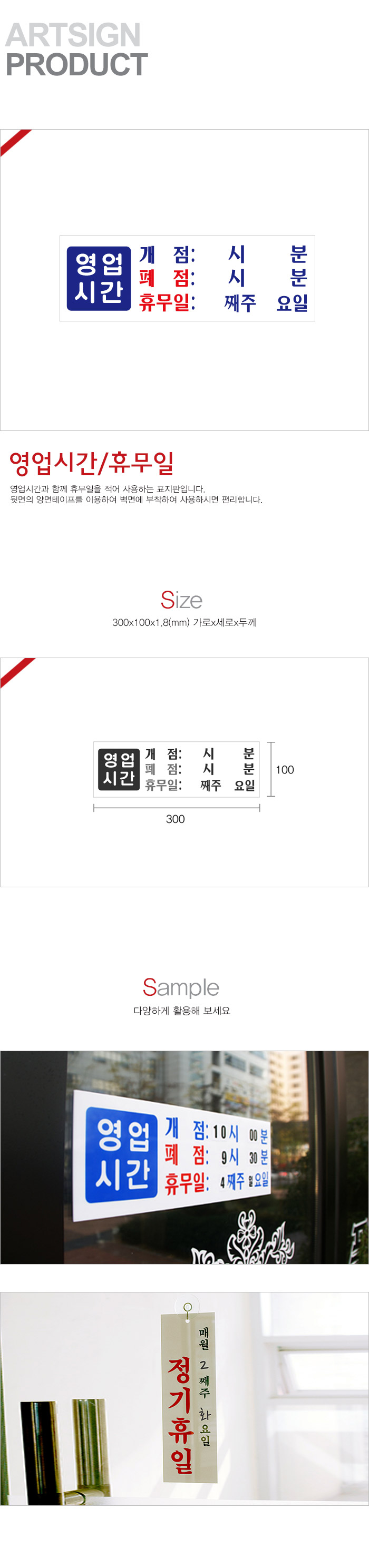 상품크기 300x100x1.8 (mm) 가로x세로x두께