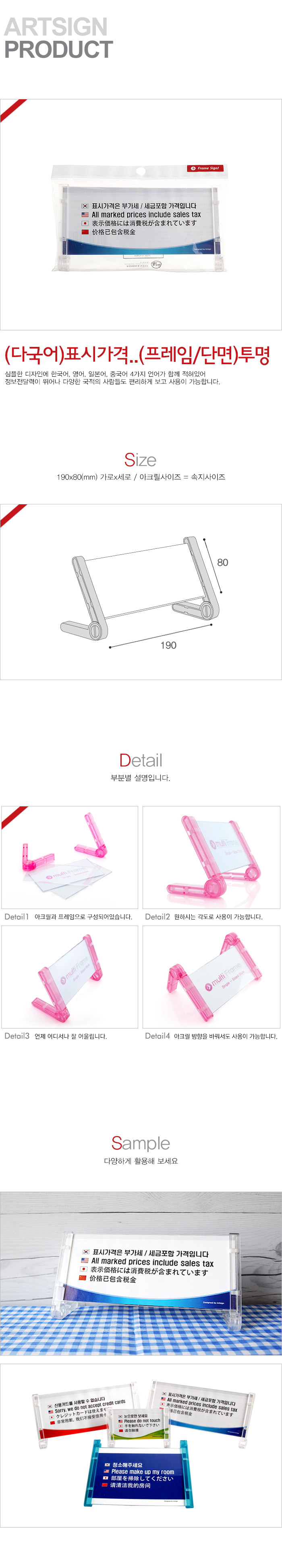 상품크기 190x80 (mm) 가로x세로 / 속지크기 기준=아크릴 크기, 아크릴두께:1.5(mm)