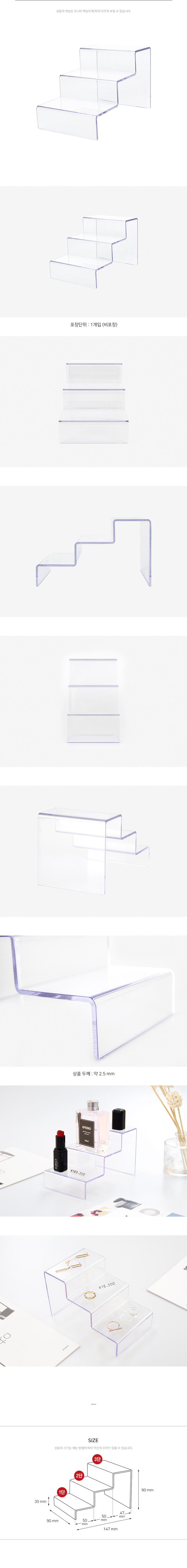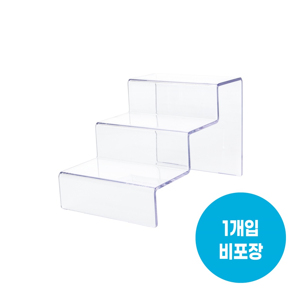 투명한 재질의 3단 절곡형 받침대로 깔끔하게 디스플레이할 수 있는 상품 진열대입니다.