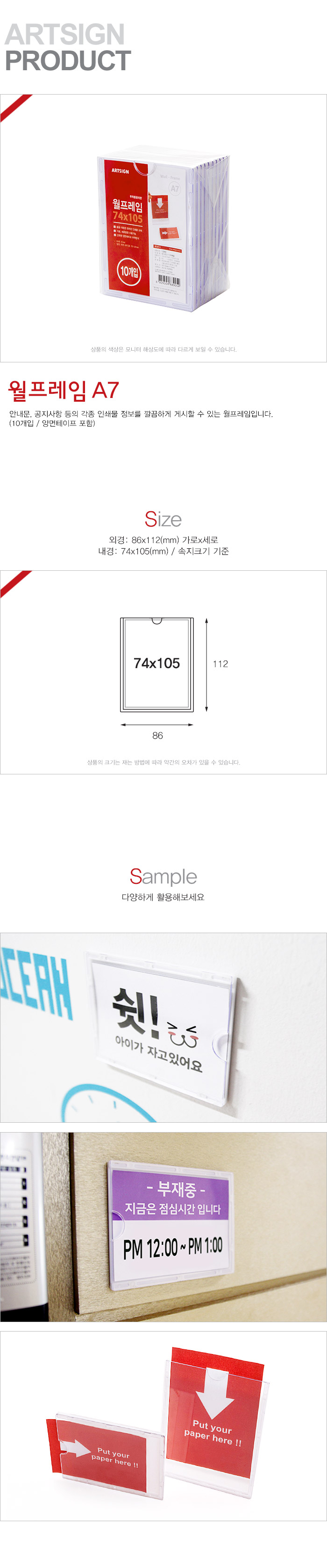 상품크기 외경: 86x112(mm) 가로x세로 / 내경: 74x105(mm) 속지크기 기준