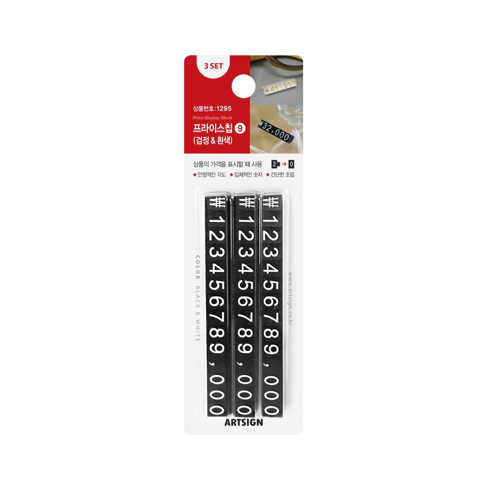 포장단위 3세트 - 1세트 구성: 14블록 / 1~9번: 각 1개입 / 0번: 3개입 / 쉼표(,): 1개입 / ₩: 1개입