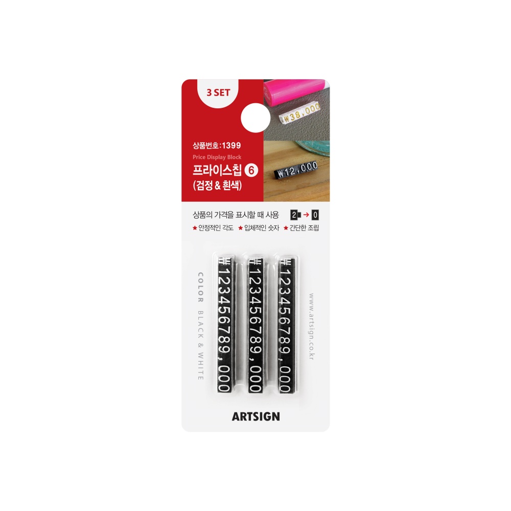 포장단위 3세트 - 1세트 구성: 14블록 / 1~9번: 각 1개입 / 0번: 3개입 / 쉼표(,): 1개입 / ₩: 1개입