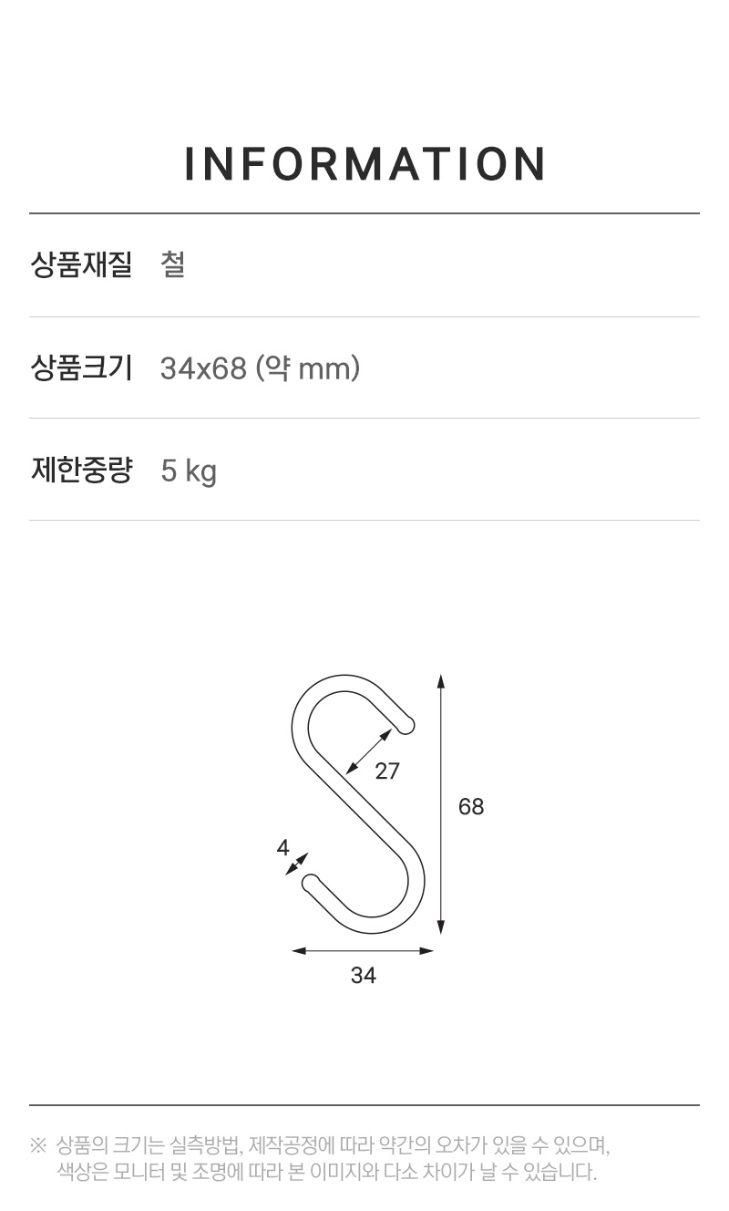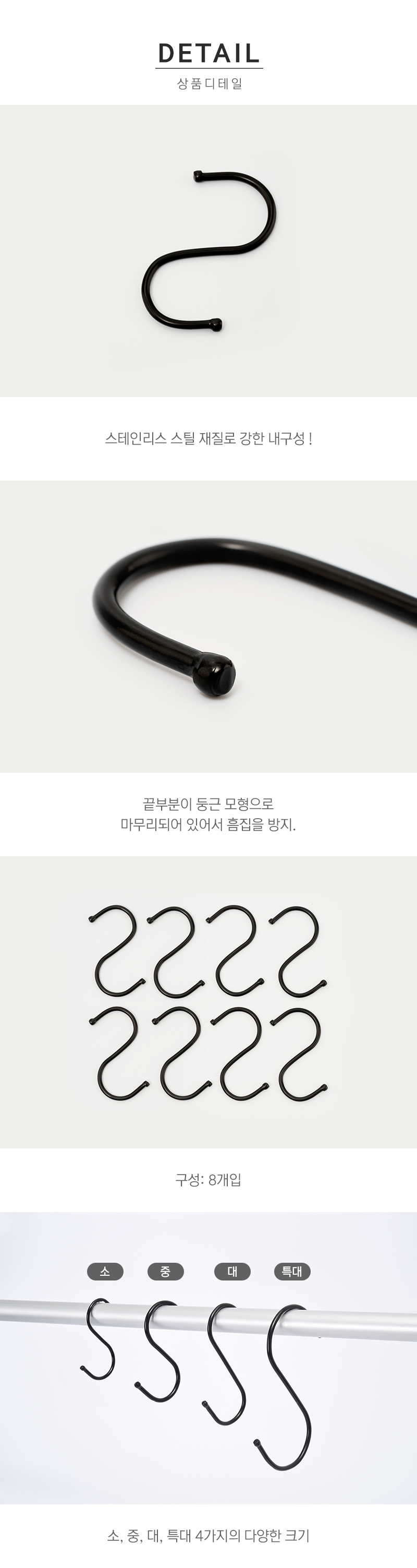연결용, 걸이용으로 사용하는 S자 걸이형 행거입니다.