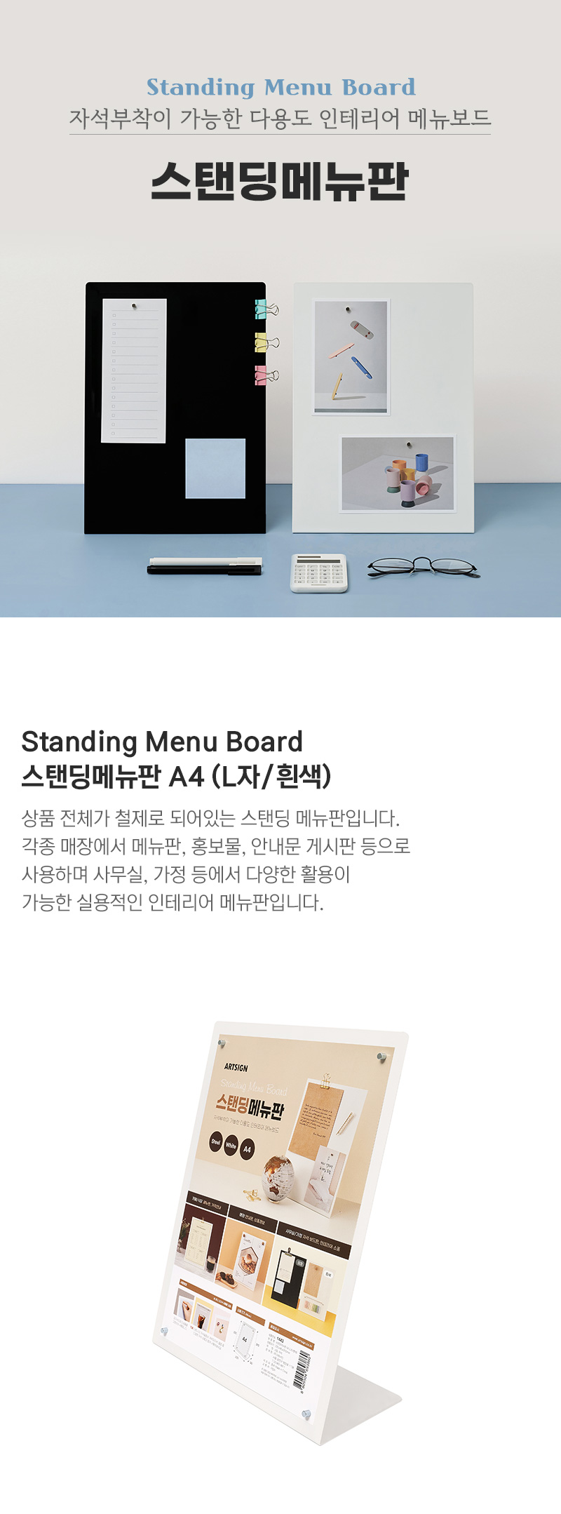 • 스탠딩메뉴판A4(L자/흰색)