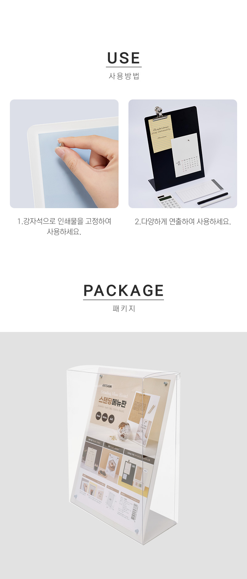 포장단위 스탠딩메뉴판 1개입, 강자석4개입