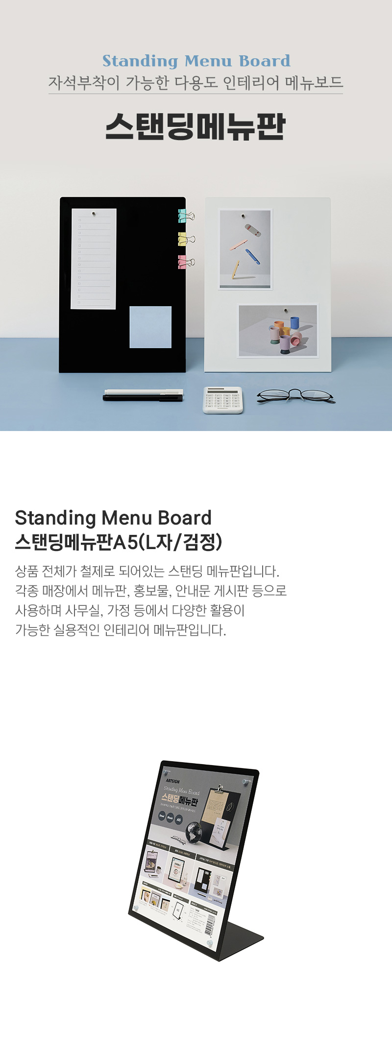 • 스탠딩메뉴판A5(L자/검정)