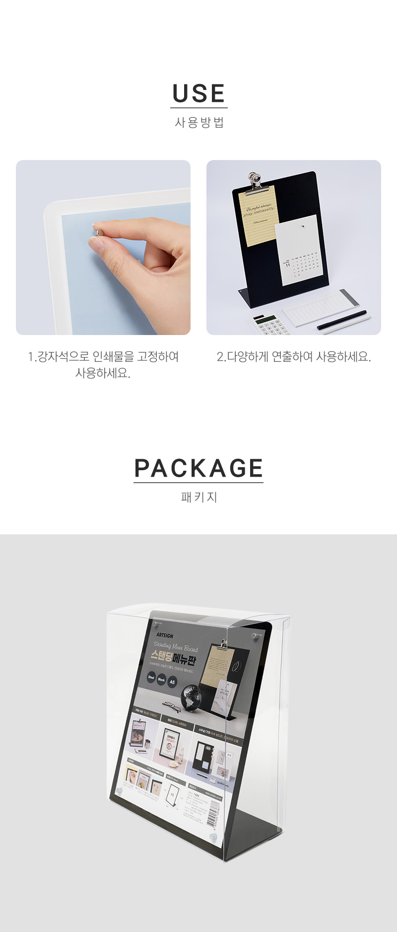 포장단위 스탠딩메뉴판 1개입, 강자석 4개입