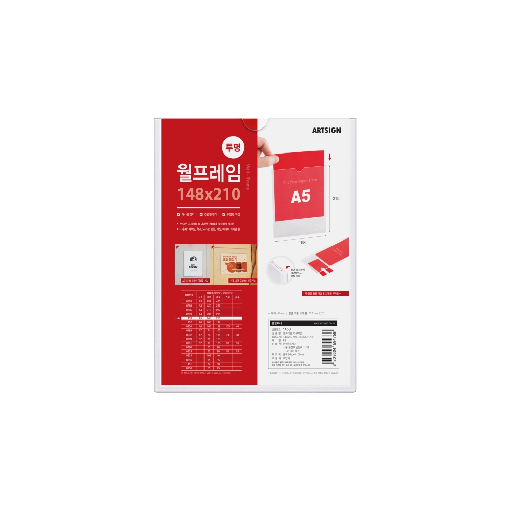프레임 전체가 투명한 월프레임으로 안내문, 공지사항 등