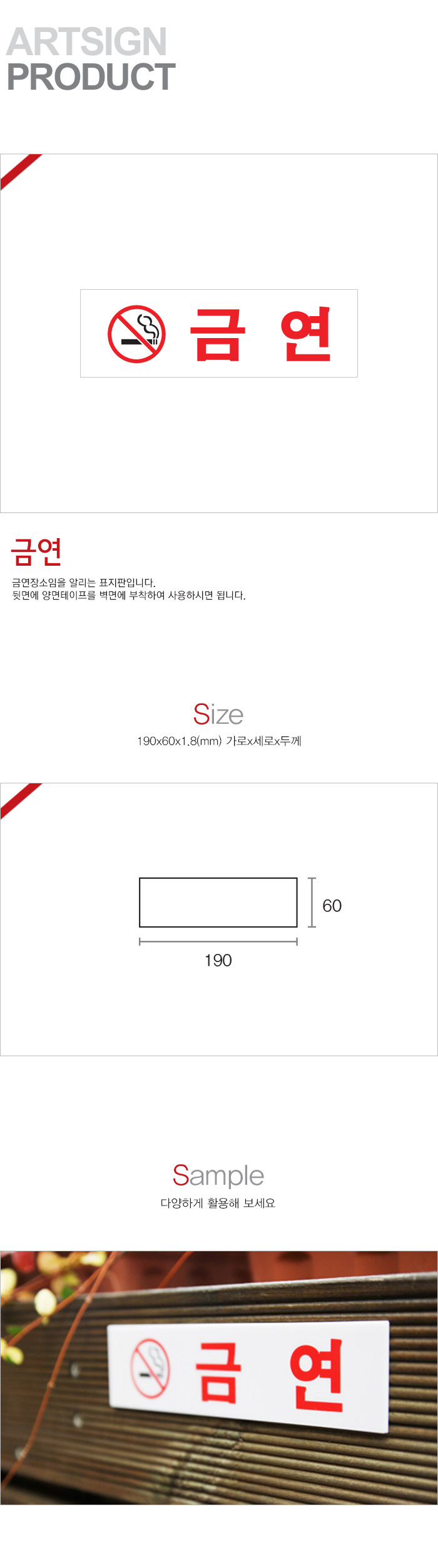 상품크기 190x60x1.8 (mm) 가로x세로x두께