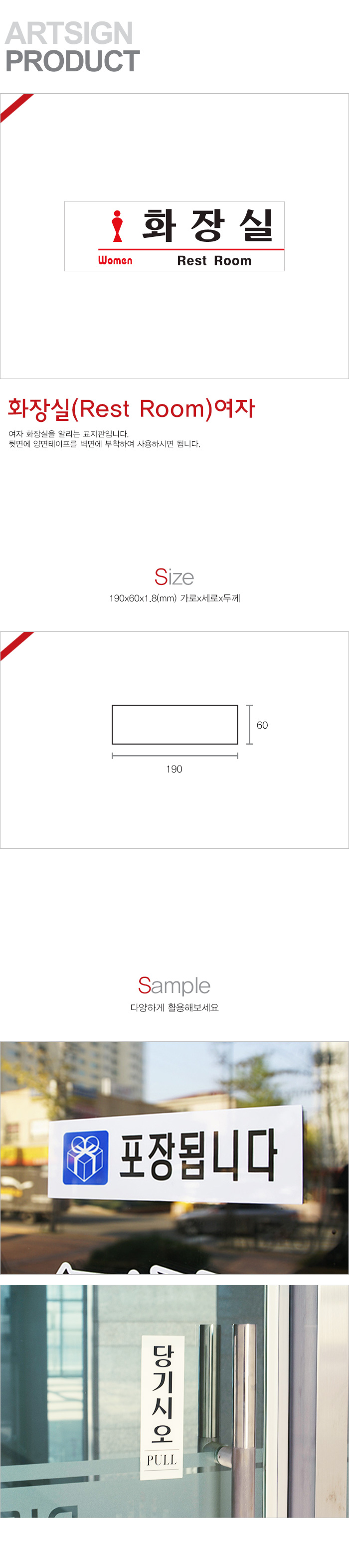 상품크기 190x60x1.8 (mm) 가로x세로x두께