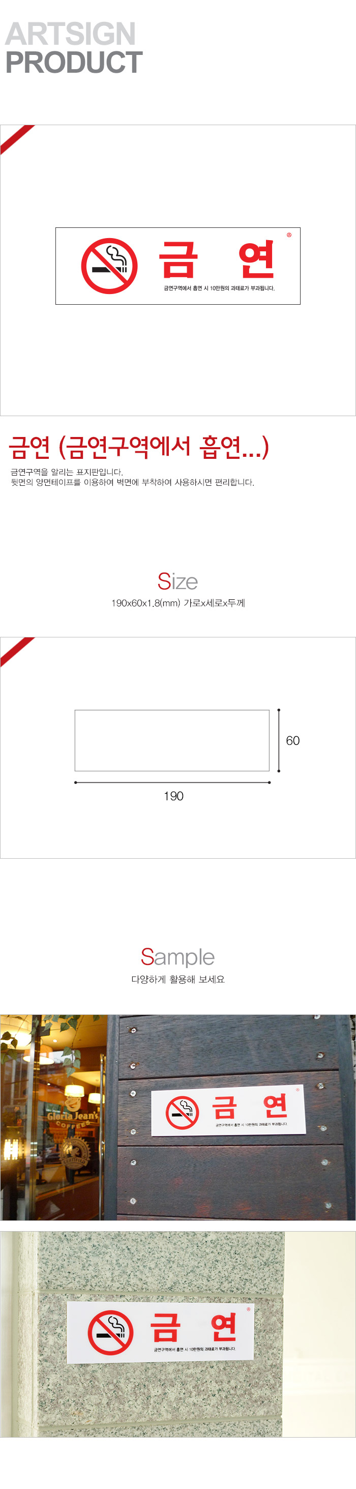 상품크기 190x60x1.8 (mm) 가로x세로x두께