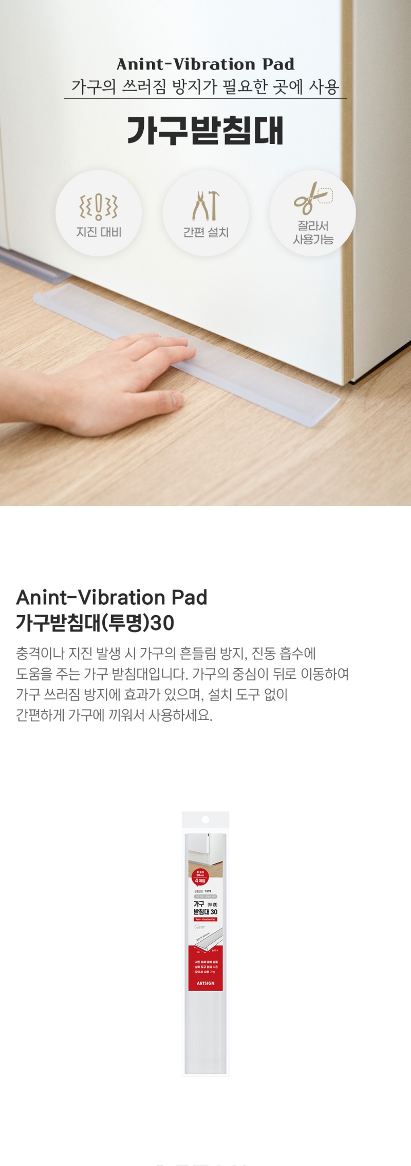 충격이나 지진 발생 시 가구의 흔들림 방지, 진동 흡수에