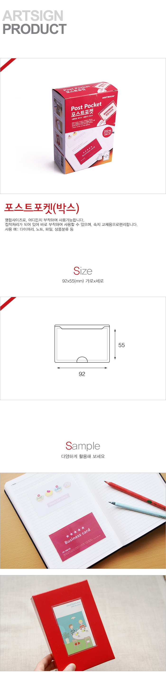 상품크기 92x55 (mm) 가로x세로 / 속지크기 기준