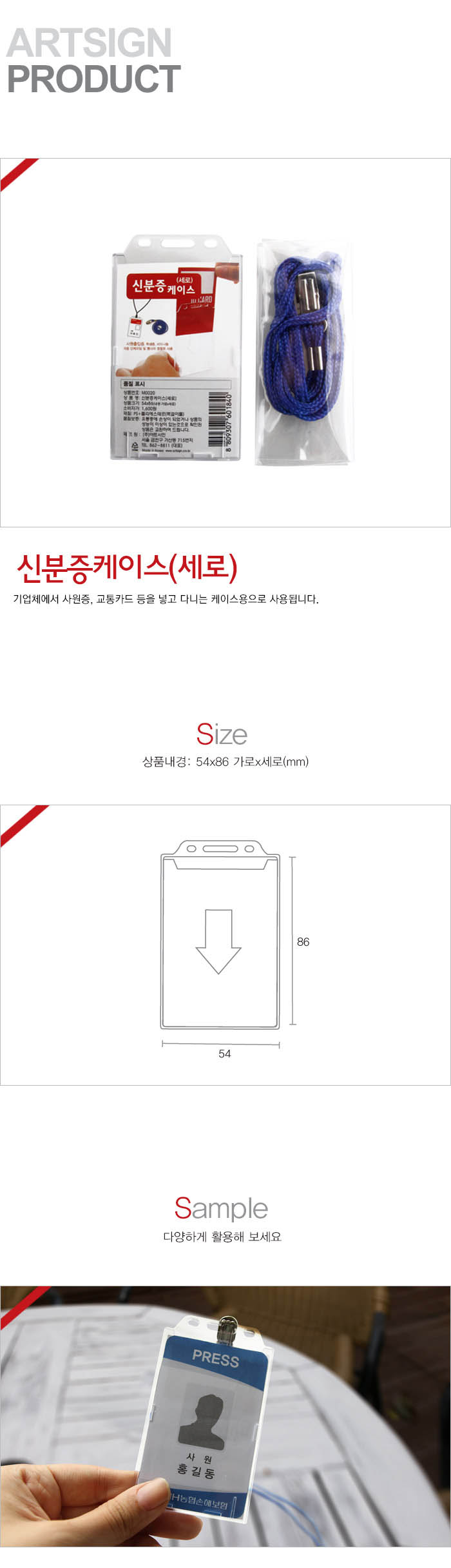 상품크기 54x86 (mm) 가로x세로 / 속지크기 기준