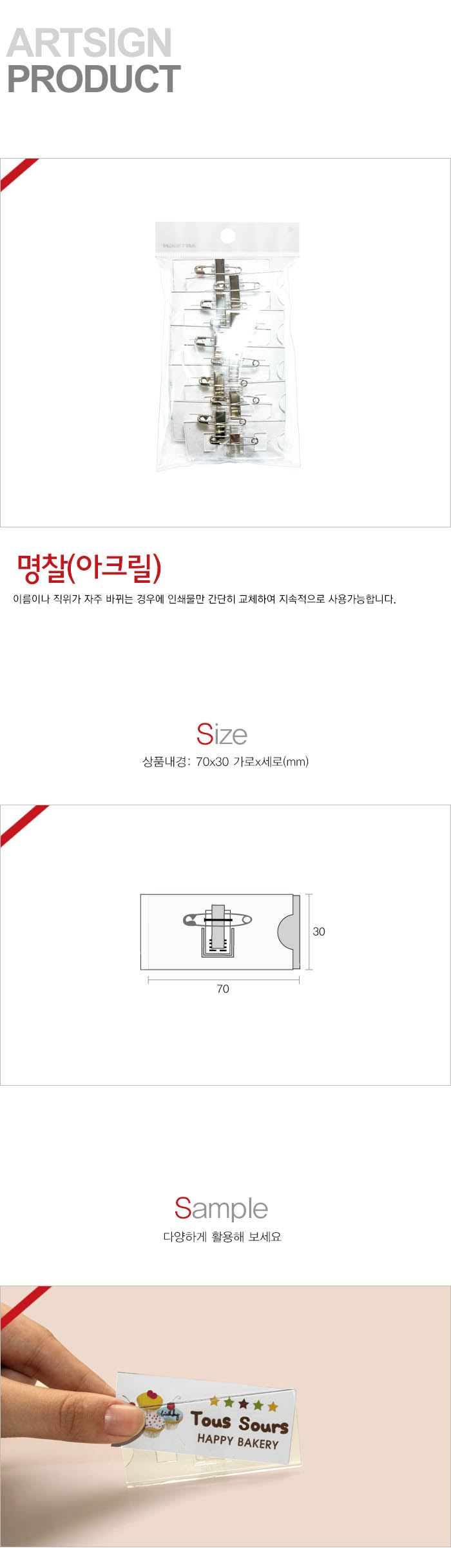 상품크기 70x30 (mm) 가로x세로 / 속지크기 기준
