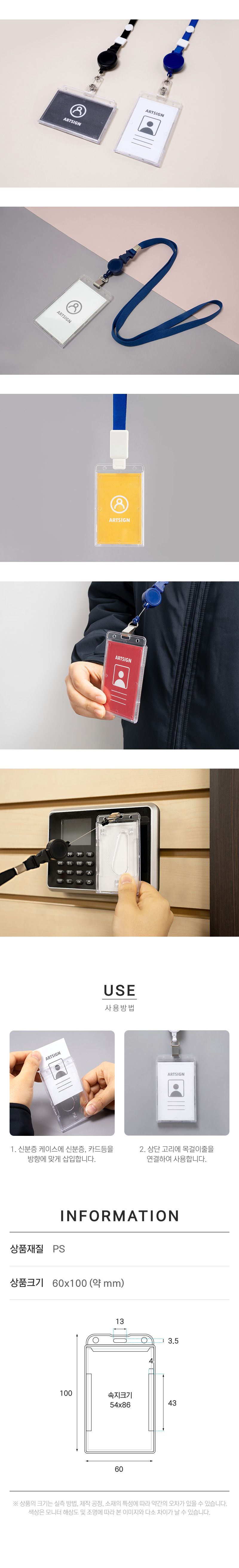 · 사용방법: 신분증케이스 상단 고리에 목걸이줄을 연결하여 사용합니다.