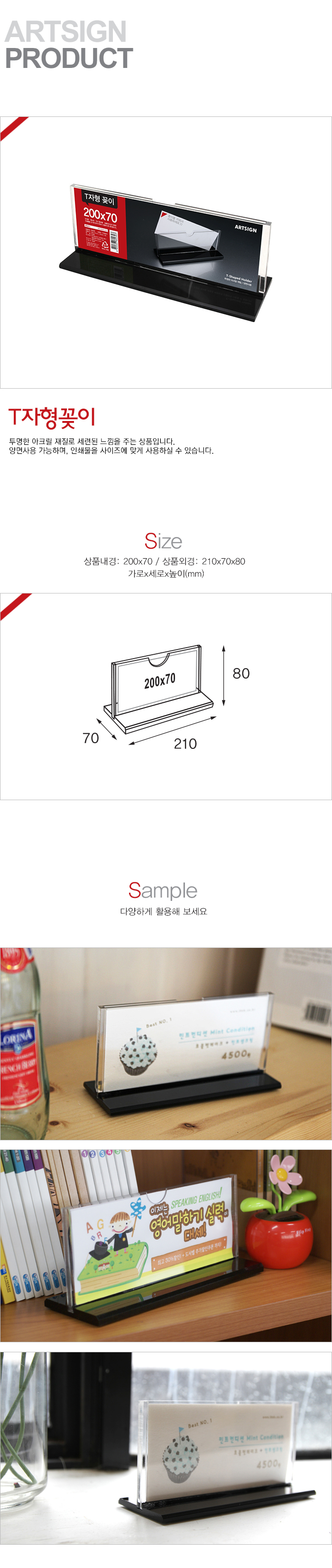 상품크기 외경: 210x70x80 (mm) 가로x세로x높이, 내경: 200x70 (mm) / 속지크기 기준