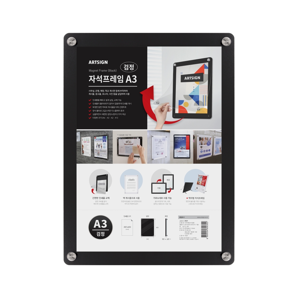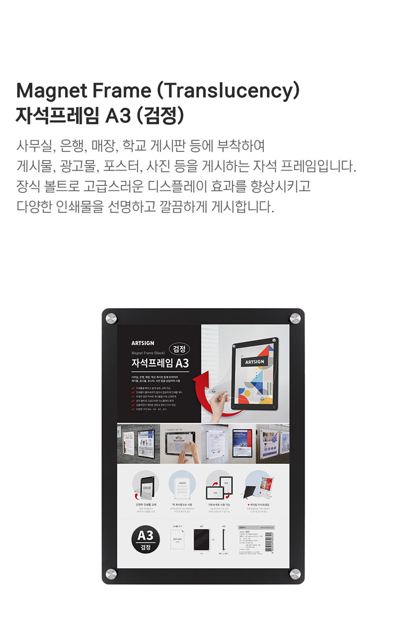 인쇄물을 빠르고 쉽게 삽입, 교체하여 사용하는 자석 프레임입니다.