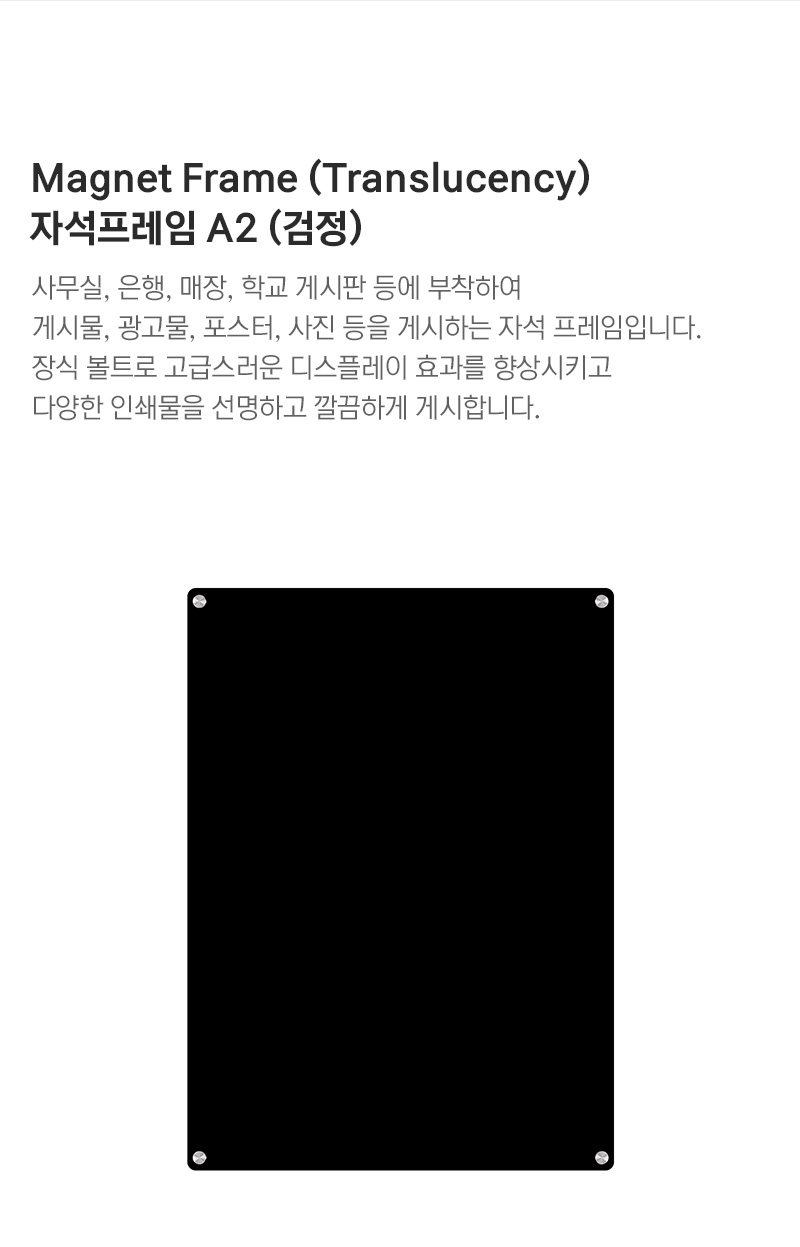 인쇄물을 빠르고 쉽게 삽입, 교체하여 사용하는 자석 프레임입니다.