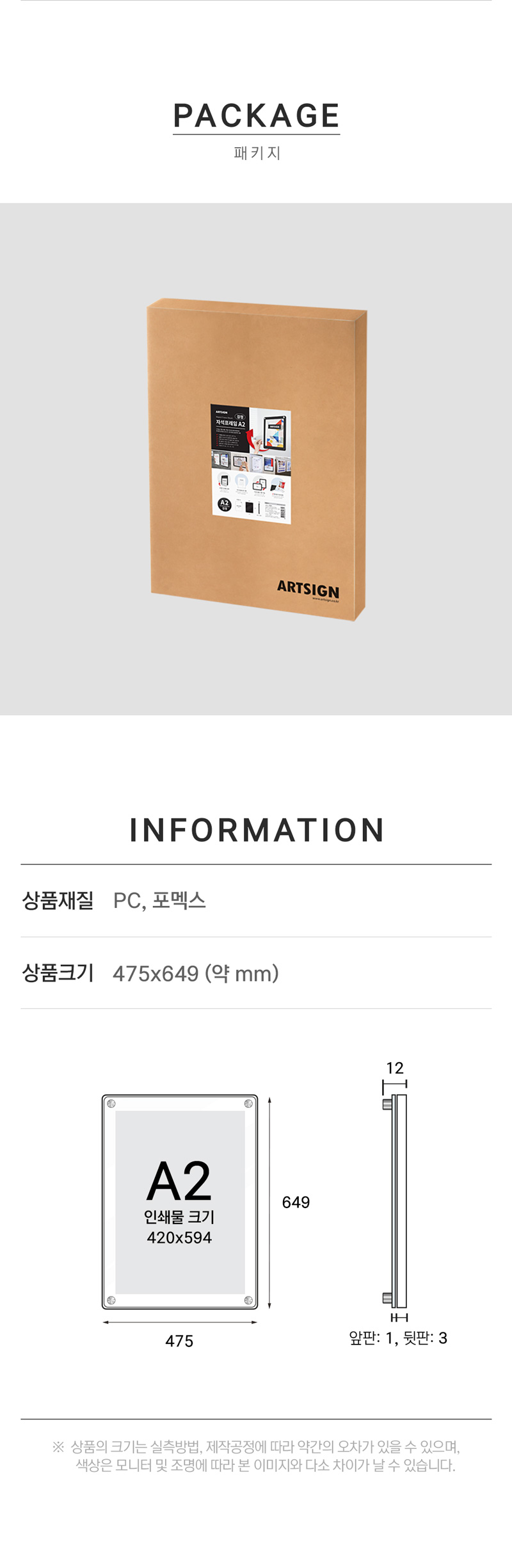 상품크기 외경: 475x649 (mm) 가로x세로, 내경: 420x594 (mm) / 속지크기 기준