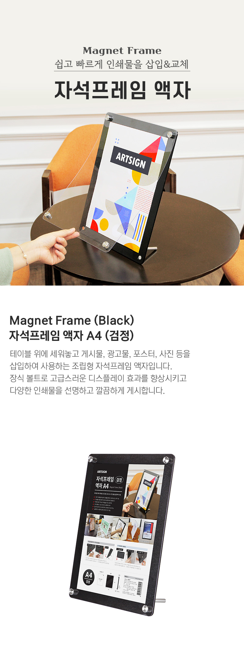 쉽고 빠르게 인쇄물 삽입, 교체가 가능하고 깔끔하게 게시할 수 있습니다.