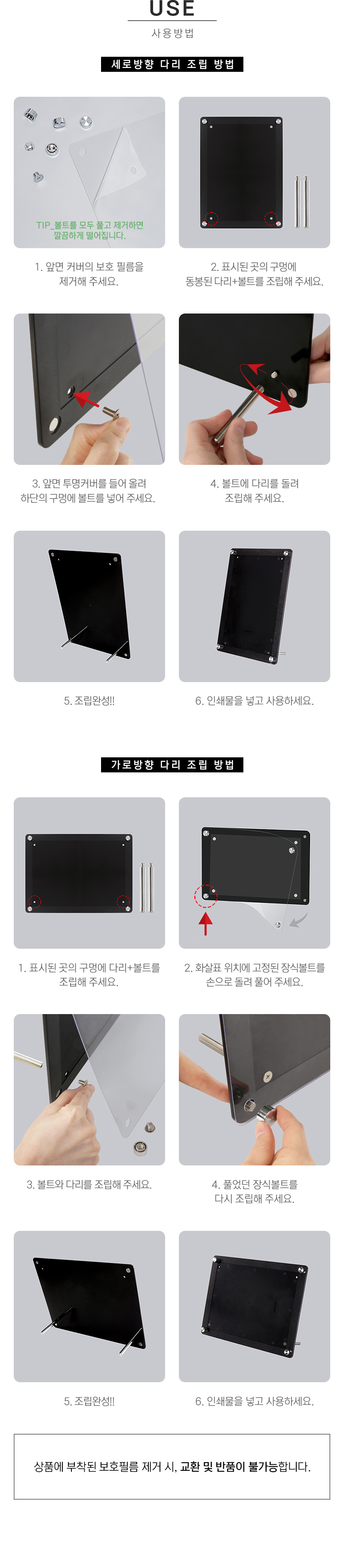 · 사용방법: 앞면 커버에 보호 필름 제거 후 동봉된 다리를 원하는