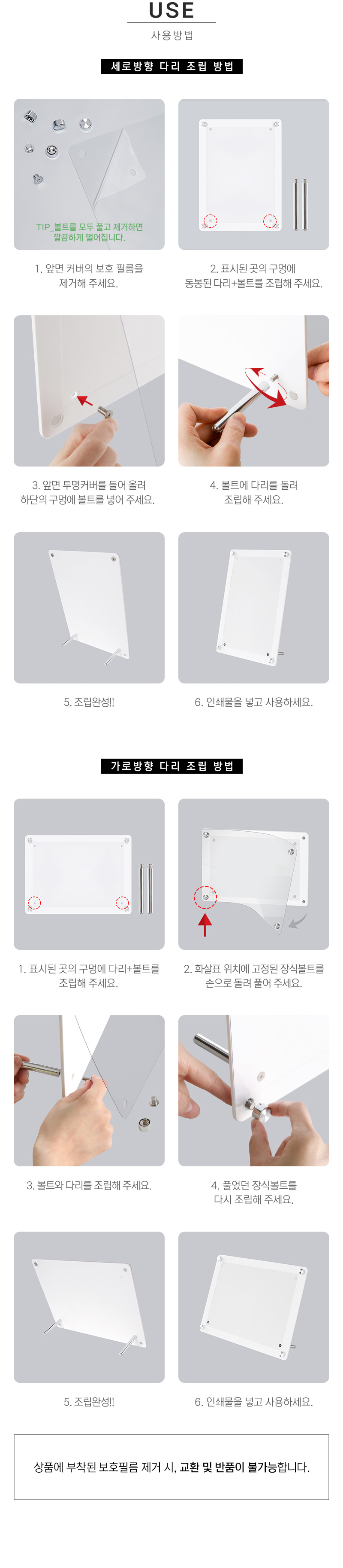 · 사용방법: 앞면 커버에 보호 필름 제거 후 동봉된 다리를 원하는