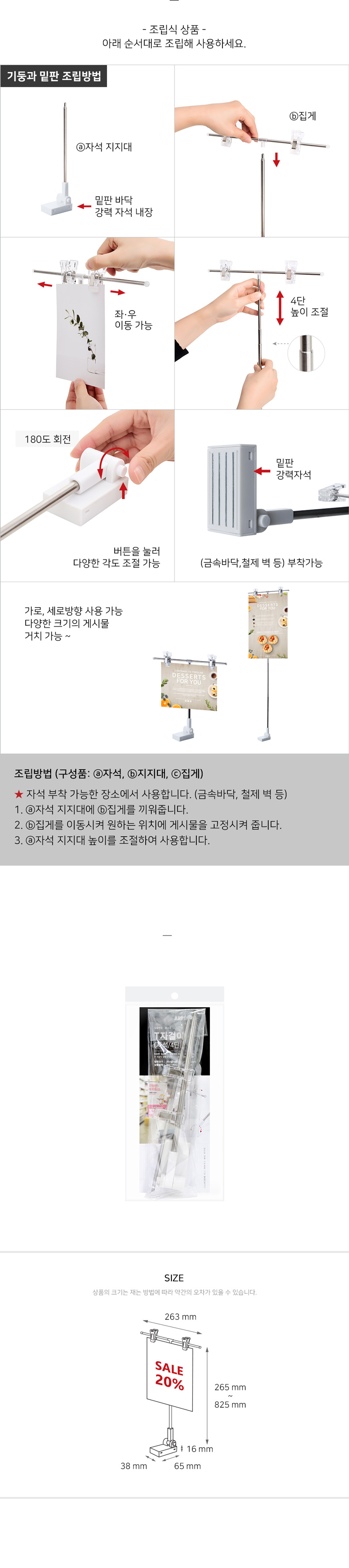 조립식 상품입니다. 다양한 장소에 안내문, 세일, 가격, 상품정보 등을 알리는데 사용합니다.