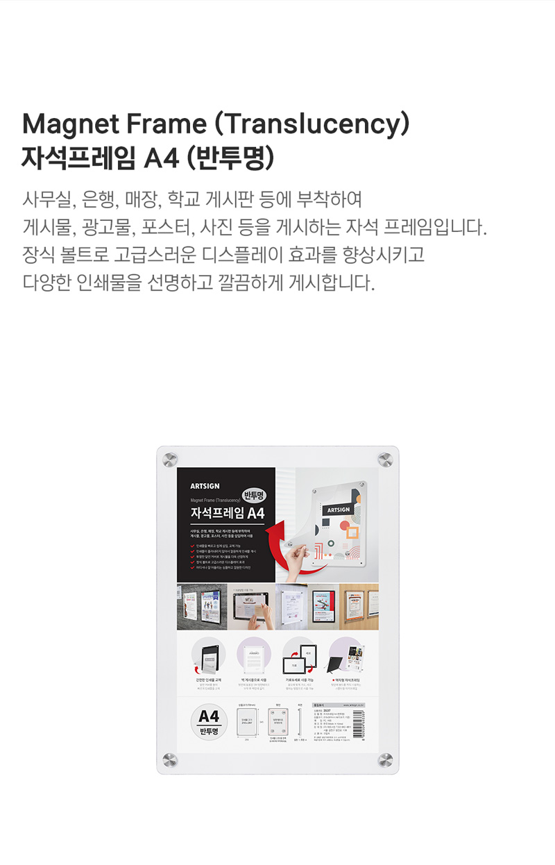 인쇄물을 빠르고 쉽게 삽입, 교체하여 사용하는 자석 프레임입니다.