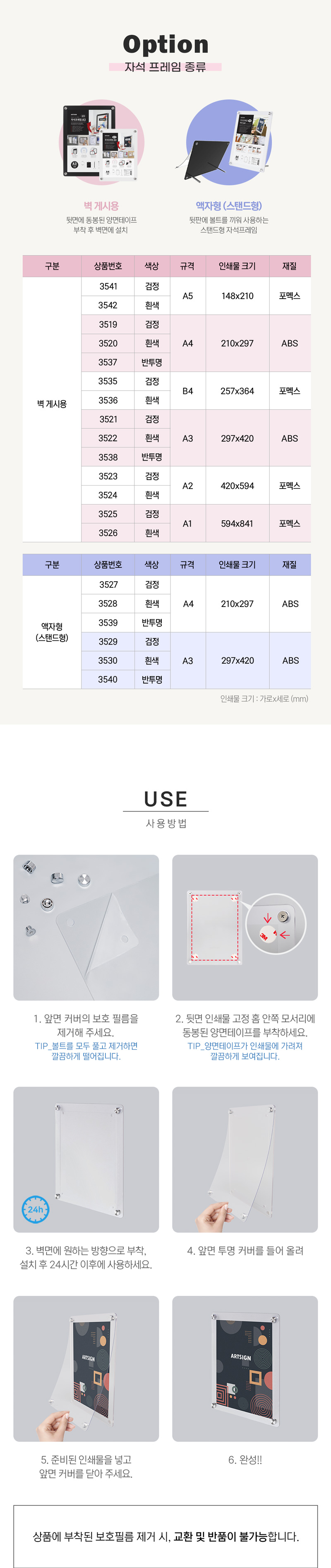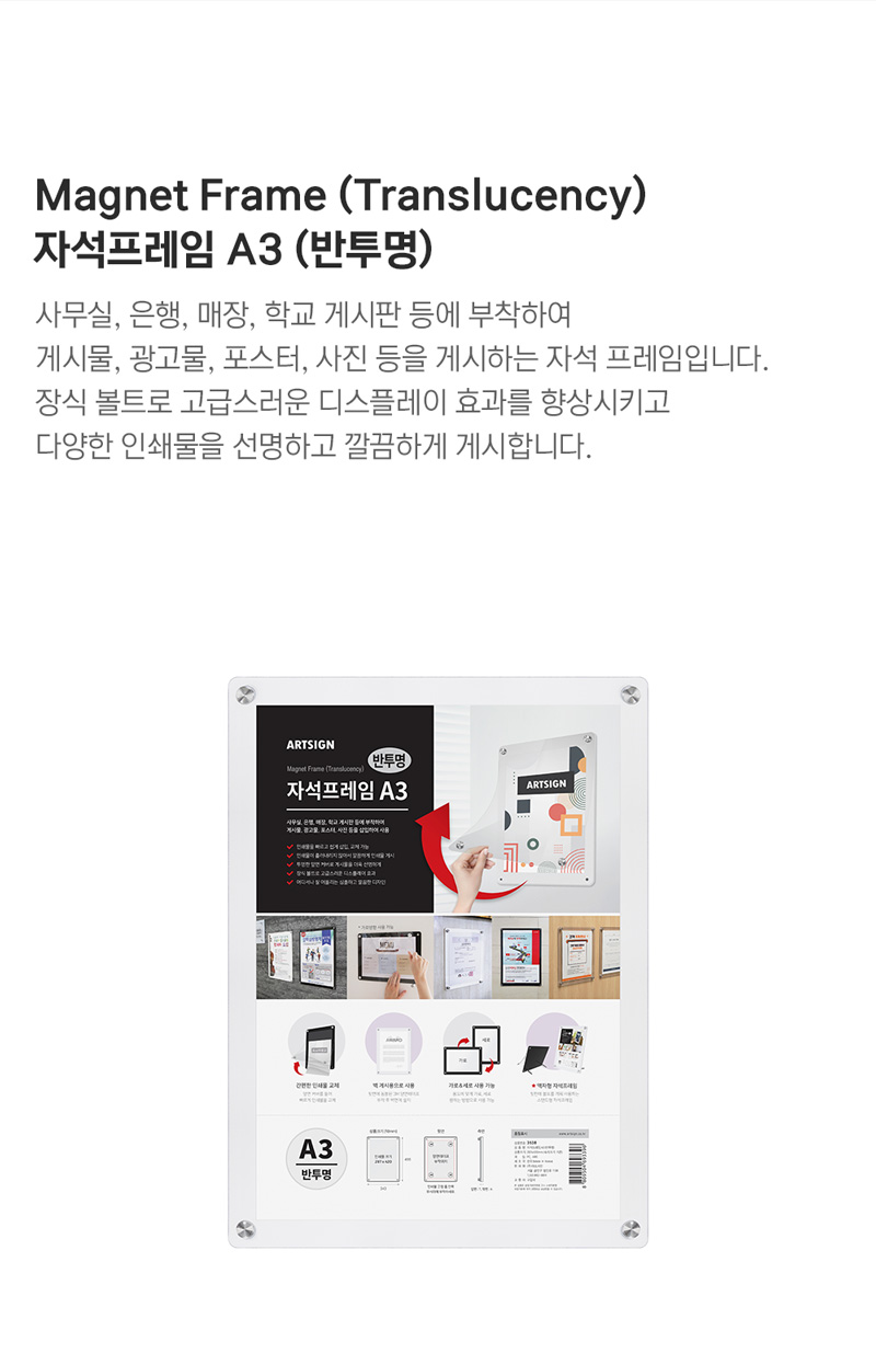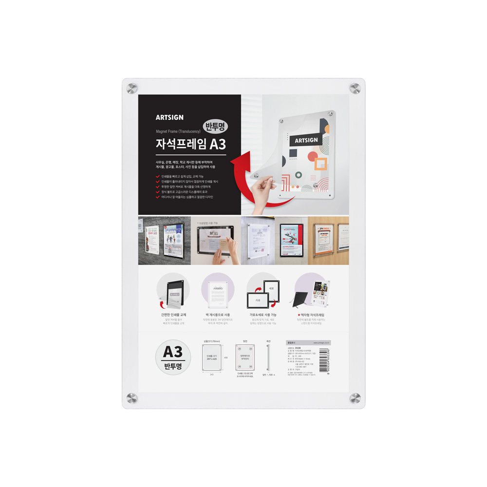 인쇄물을 빠르고 쉽게 삽입, 교체하여 사용하는 자석 프레임입니다.